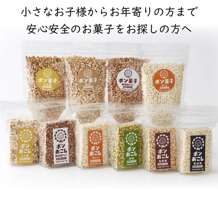 ポン菓子のようにバラバラこぼれず、チャック付きなのでちょっと小腹が空いた時やお子様と外出中などにパクッと食べられ大活躍していると嬉しいお声もいただいています!